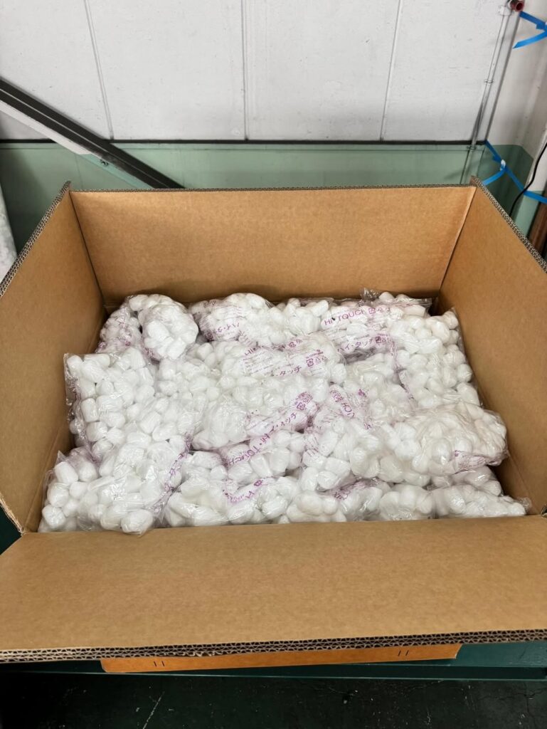 商品を入れてから緩衝材を四隅に詰めて商品が動かないようにするのと万が一倒れたりした時に衝撃あっても商品は傷行かない様になってます